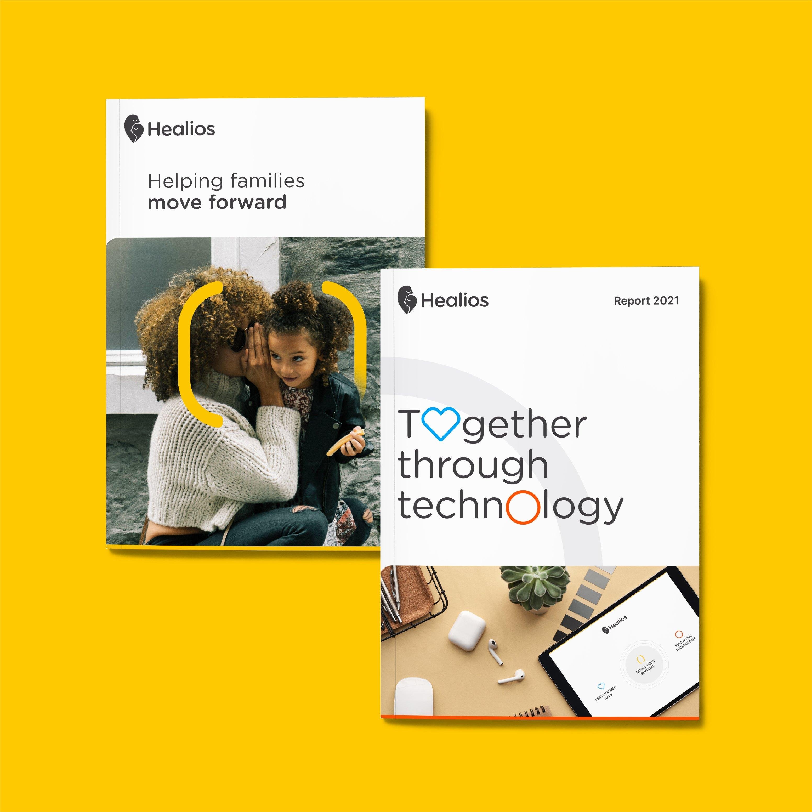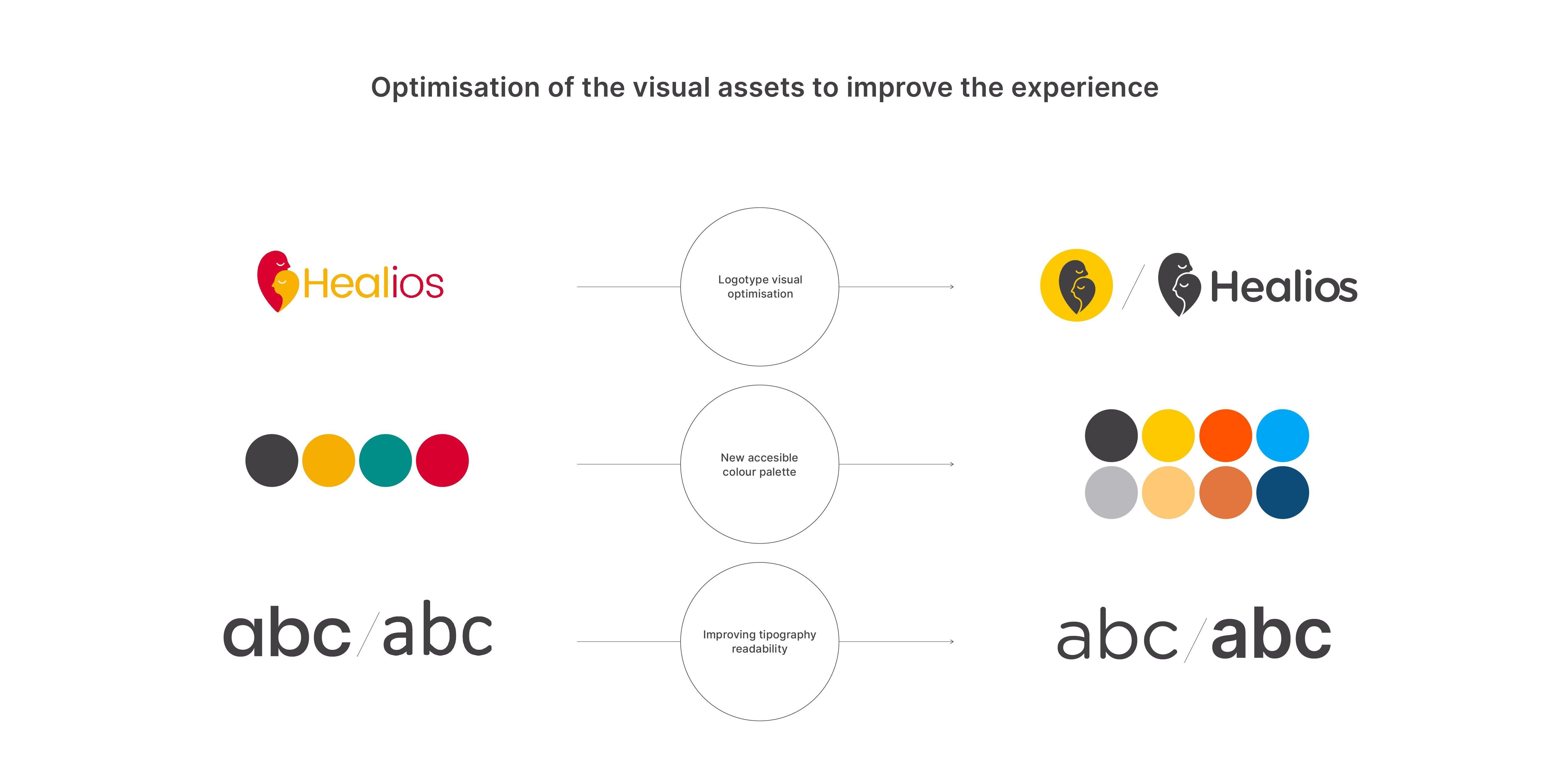 This careful balance inspired the combinations of colours: Positive vibrant colors convey the emotional elements of Healios, while cool greys match their professionalism and innovative nature. Both of which equally define Healios.