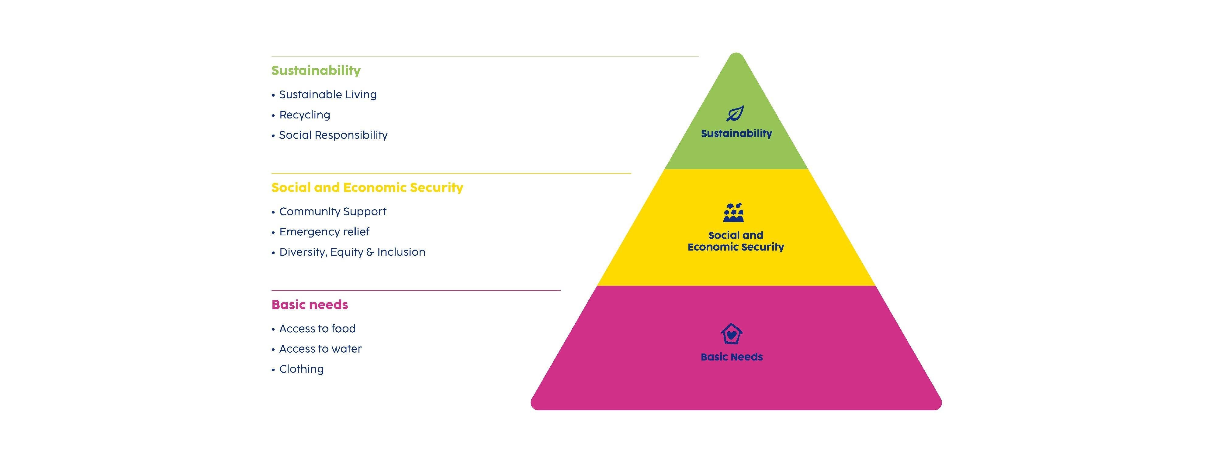 The process also included surveys of current volunteering initiatives and future areas aligned with the corporate strategy. Which helped to create the Prosperity Pyramid designed to streamline the areas of impact.